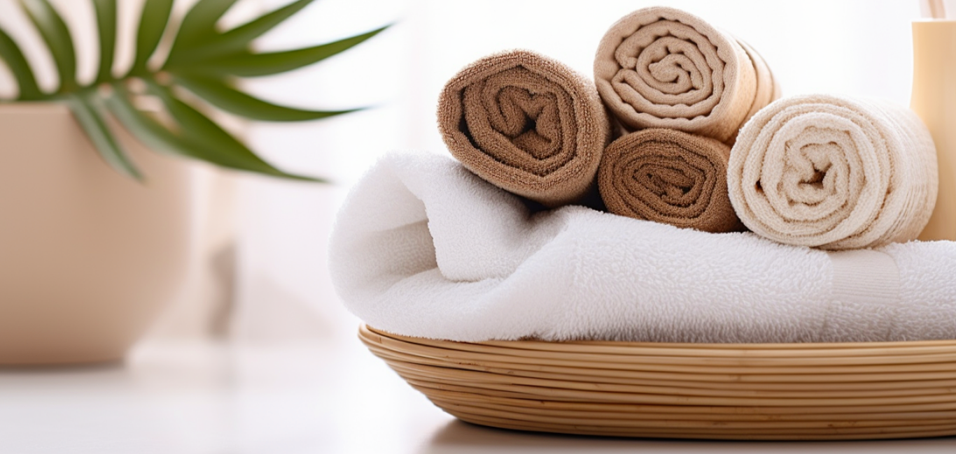 Meridian Idaho Facials skincare products arranged on a spa table with folded towels, used in custom facials at Cactus Bloom Aesthetics in Meridian, Idaho